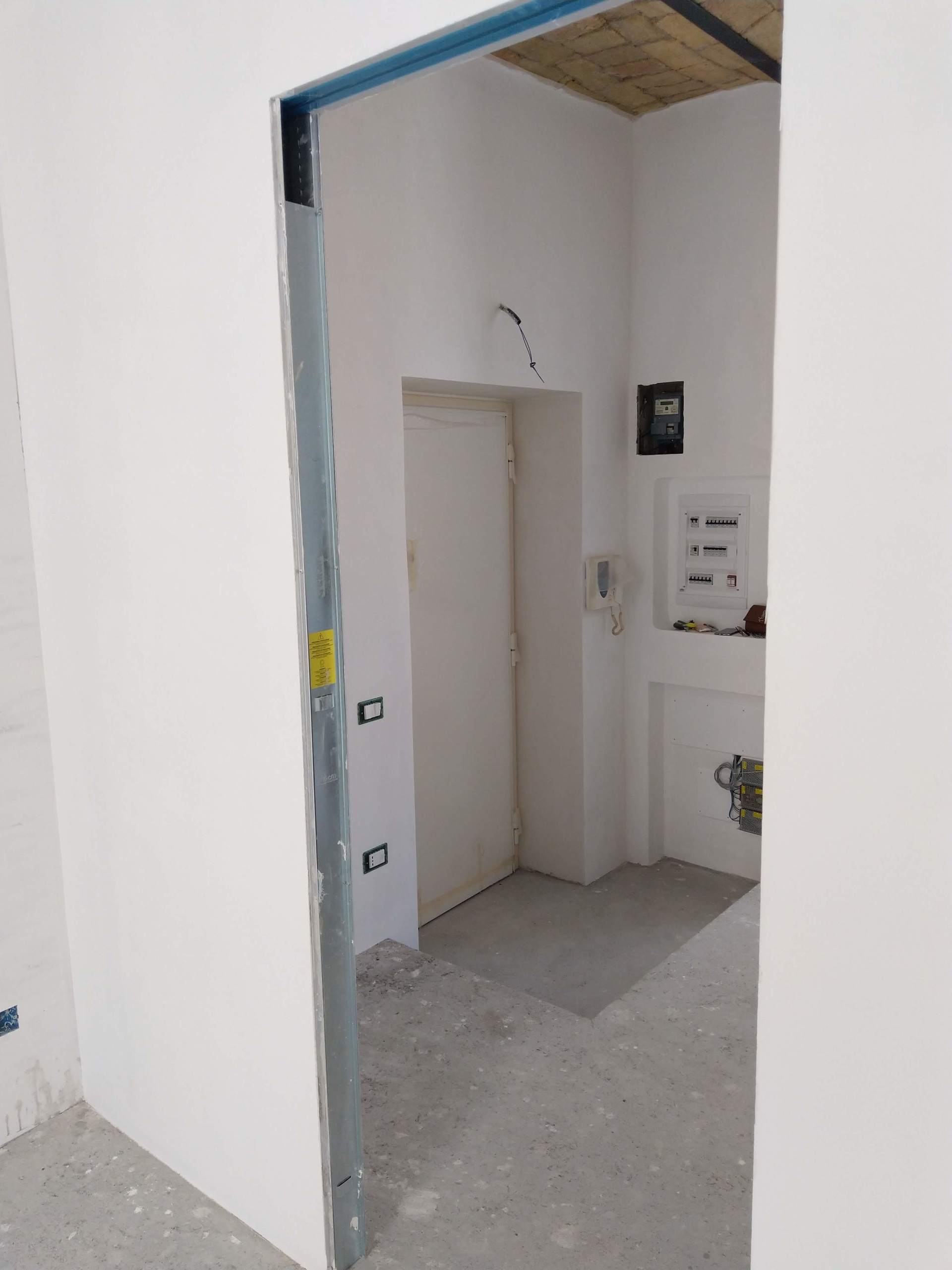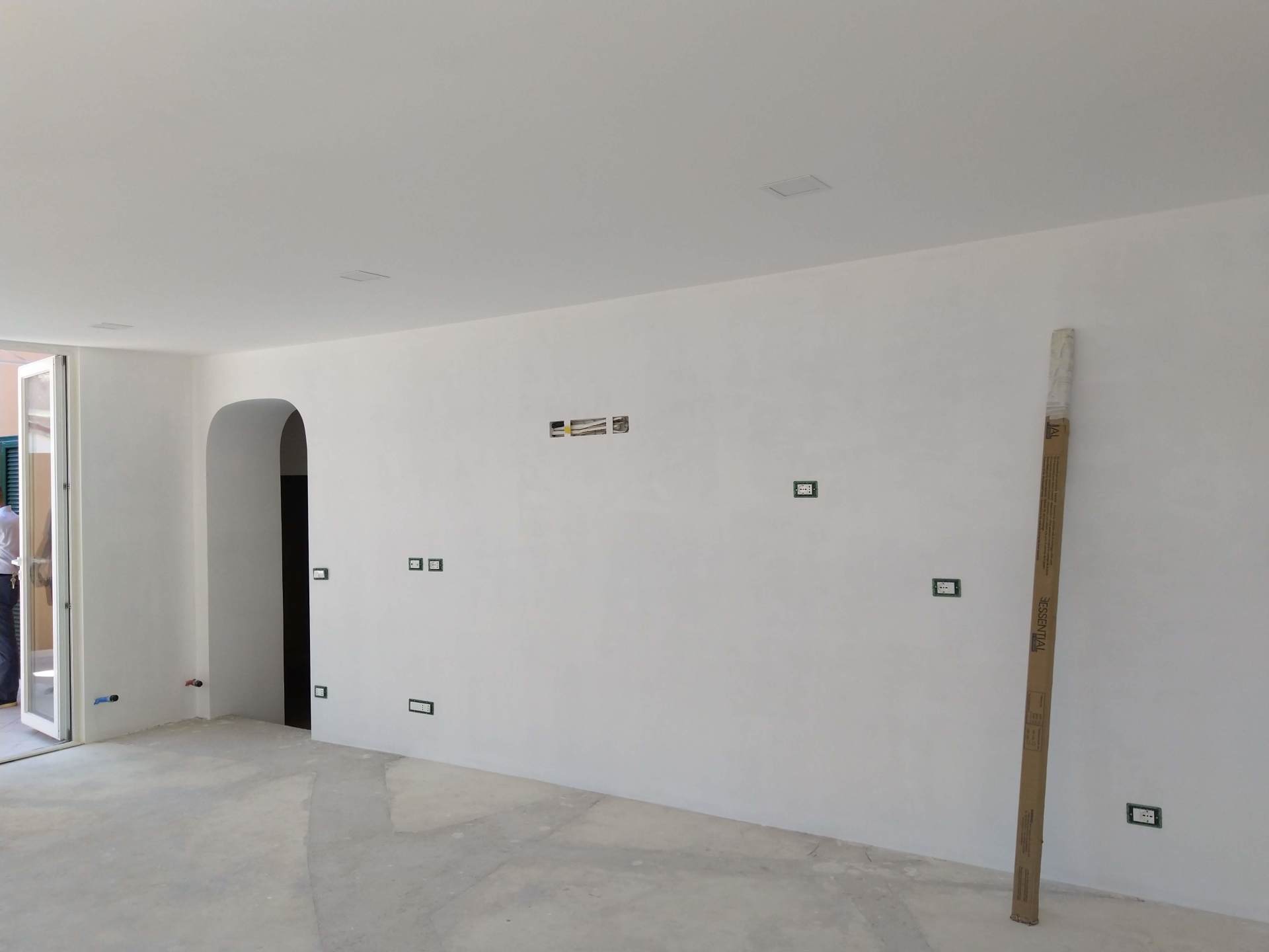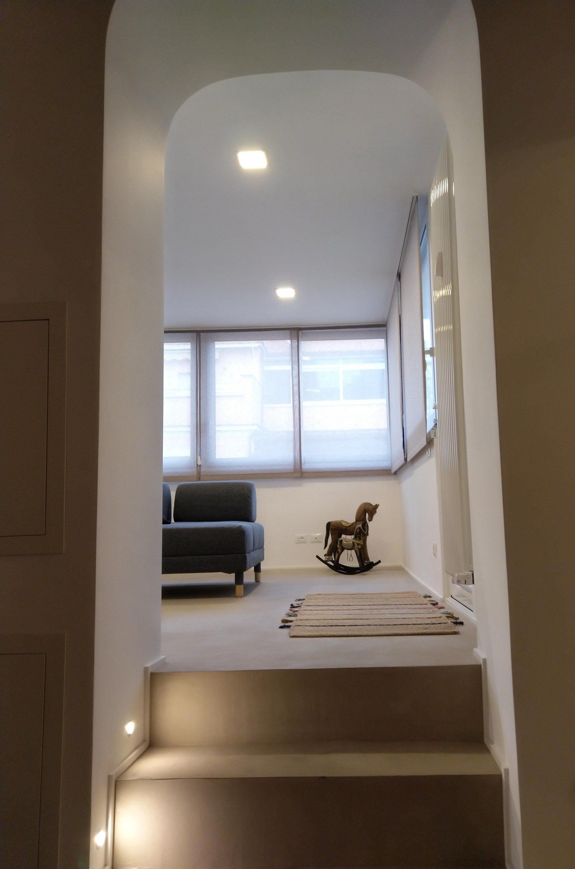 Oltre alla riqualificazione completa degli impianti idraulici ed elettrici, la creazione di nuovi tramezzi, abbiamo previsto anche l'innalzamento del massetto originale per riequilibrare un dislivello esistente di 80 cm tra la veranda e il resto dell'appartamento.