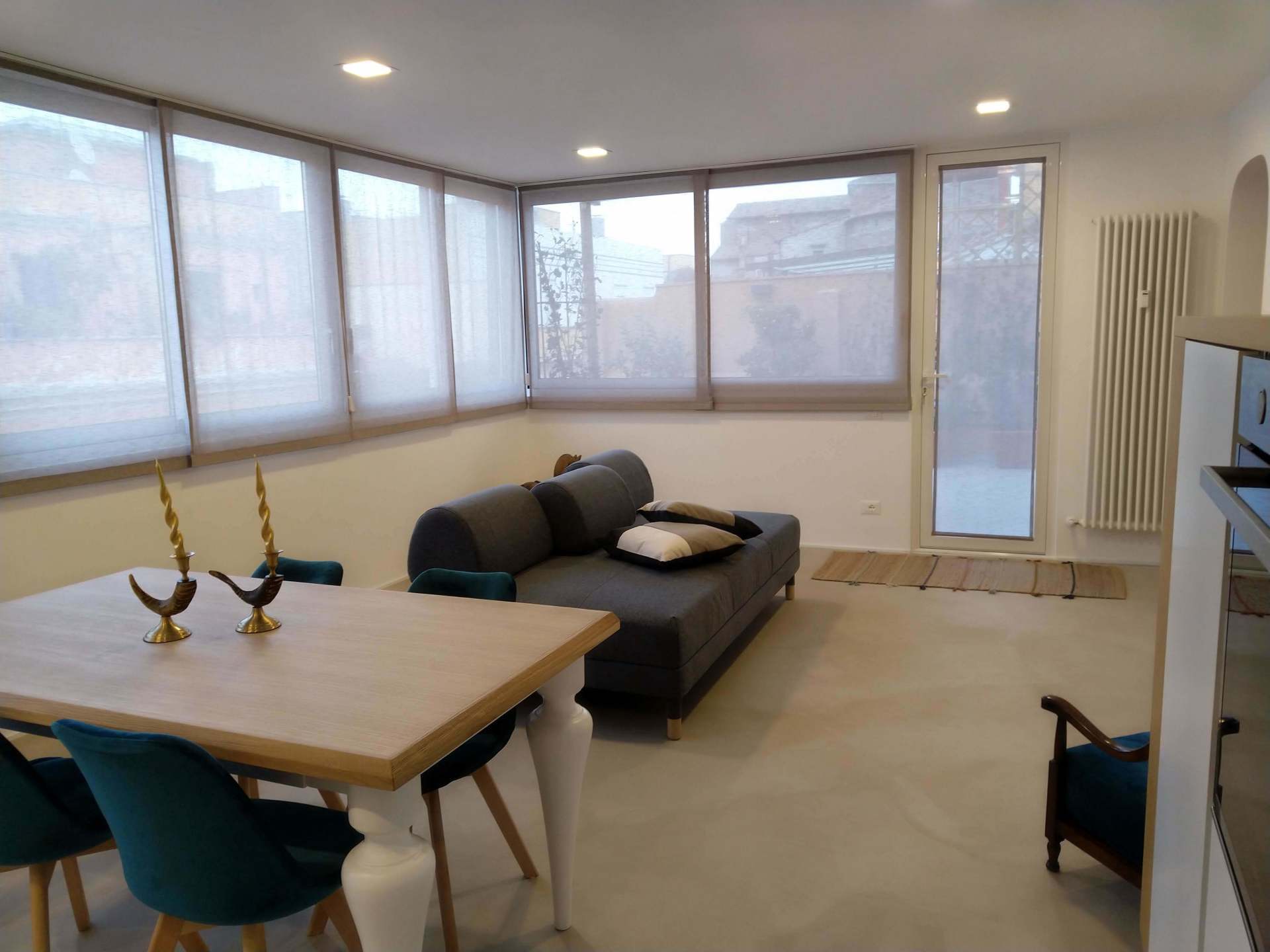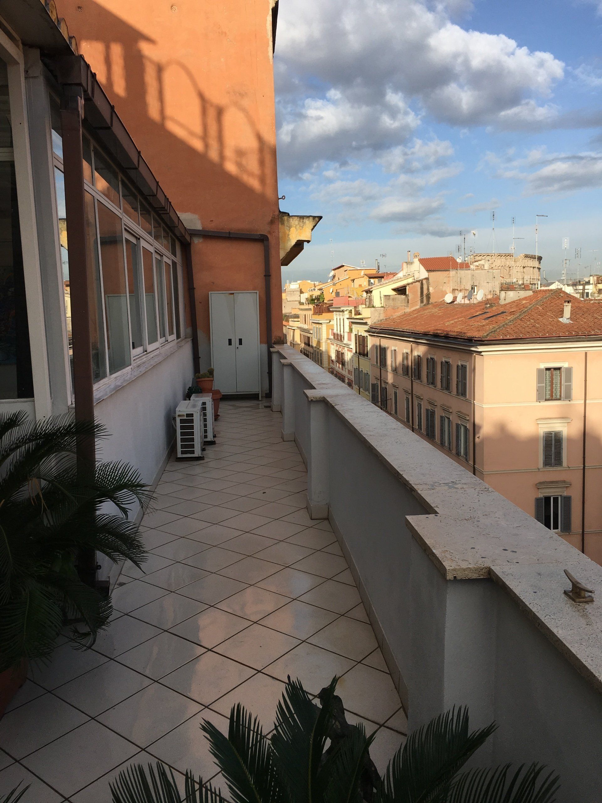 Con affacci sul Colosseo e su Colle Oppio l'appartamento di circa 90 mq, oltre terrazzo di 40 mq al piano e balcone, gode di una ottima luminosità.