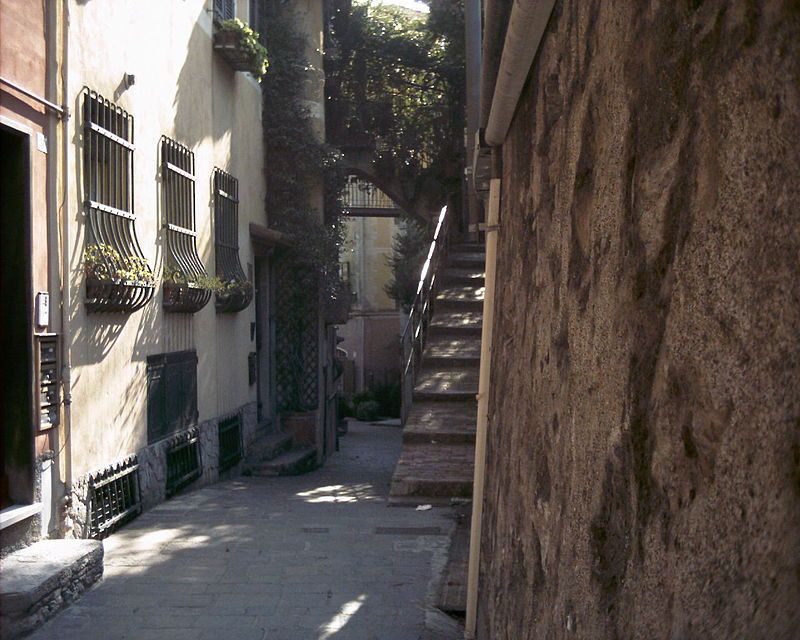 (doge genovese) o costeggiando in un primo tratto il marciapiede della S.P. di Portofino e quindi la via interna del borgo la via Travello, raggiungiamo il