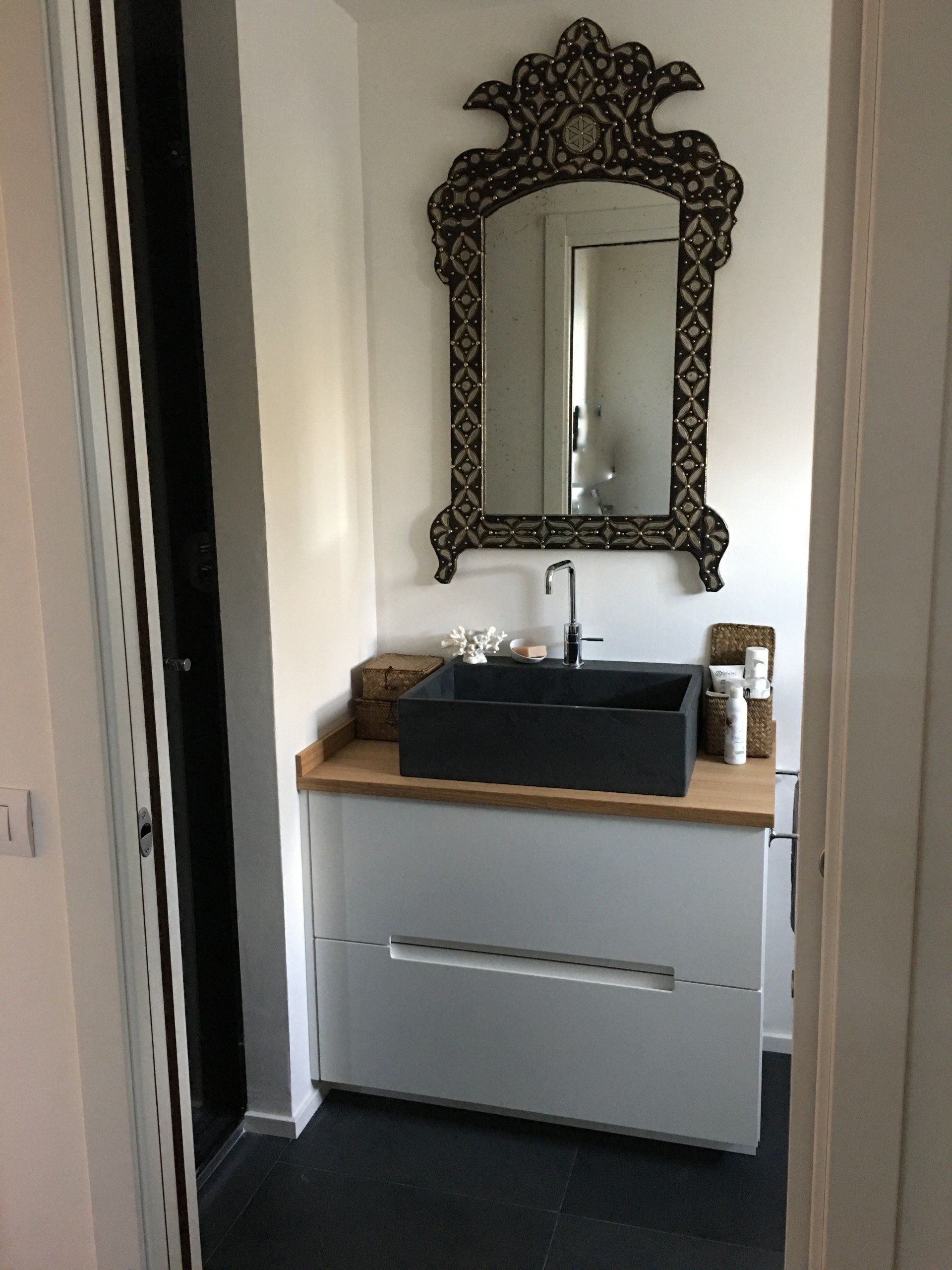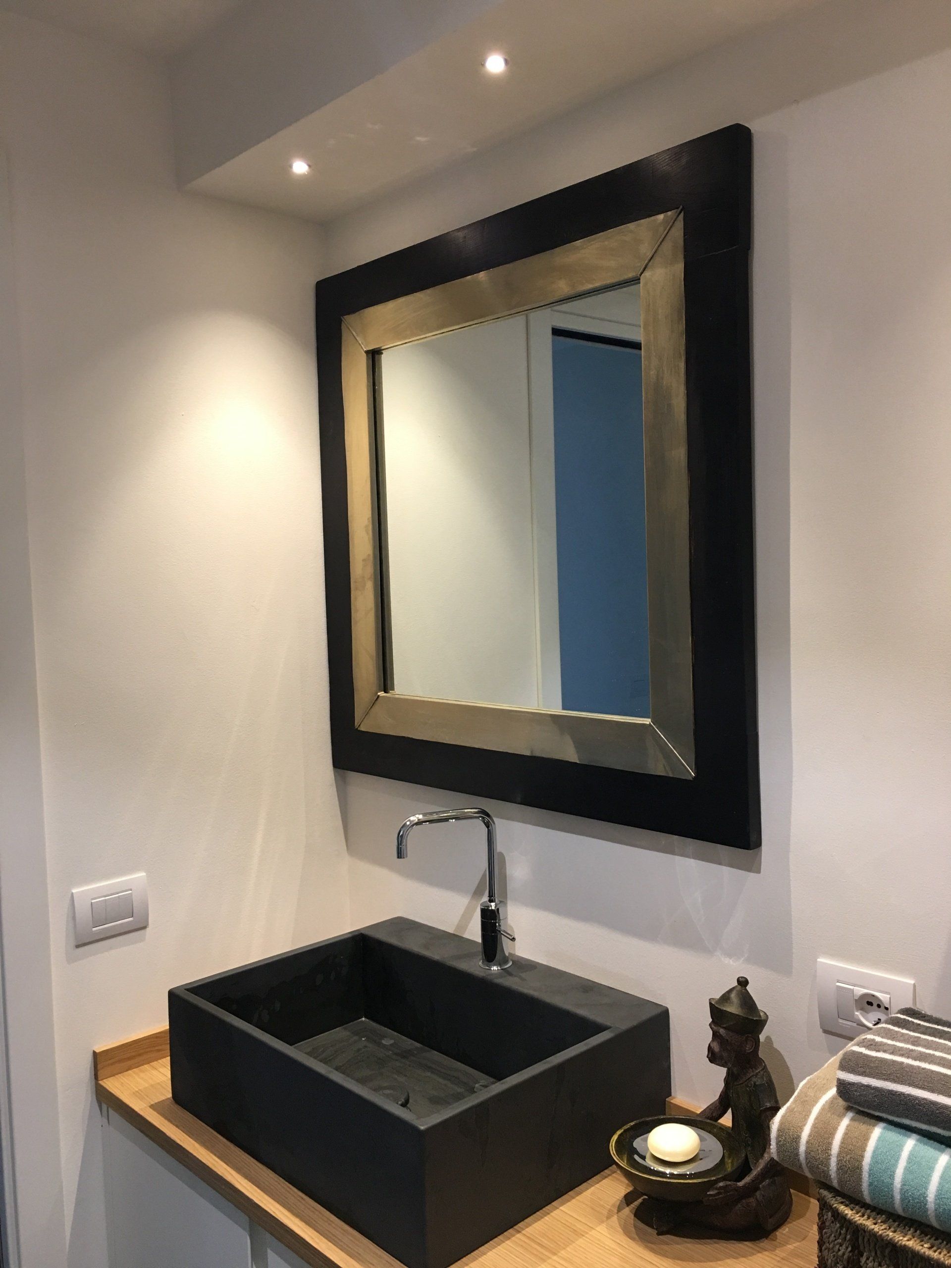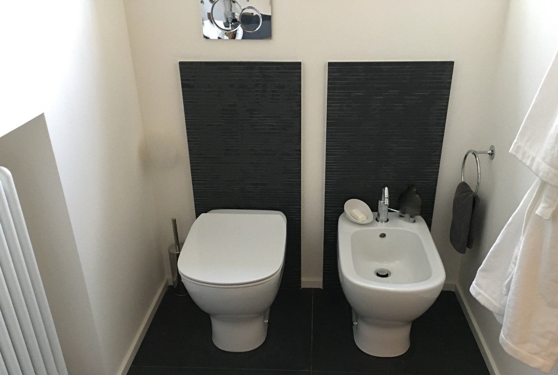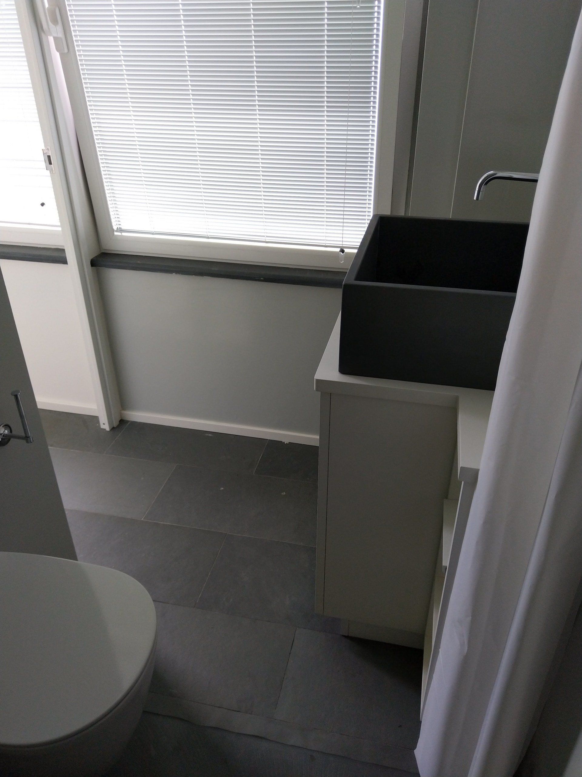 L'esclusività in questo lavoro, è stata nei rivestimenti realizzati per i bagni, grandi lastre dalla lavorazione molto particolare e di grande effetto, posate nelle docce e dietro i sanitari, i grandi piatti doccia dalle mille venature che risaltavano con lo scorrere dell'acqua e i lavabi, monoliti di ardesia lavorati a regola d'arte