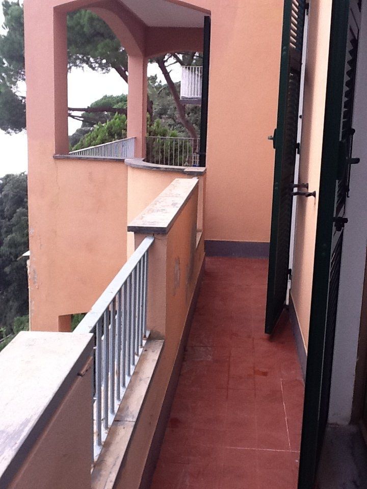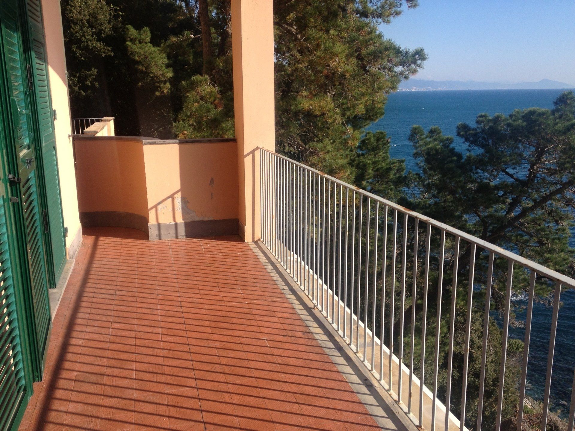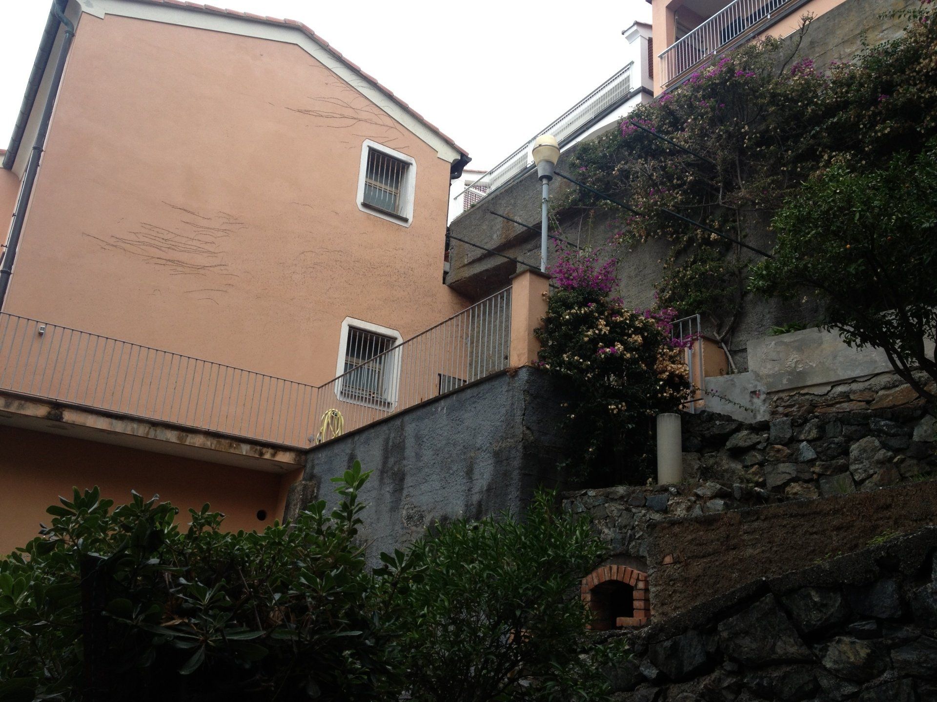 Oltre all'appartamento di 100 mq, dalla loggia/balcone si arrivava ad un primo terrazzo che, tramite dei sentieri in pietra, ci dava la possibilità di accedere ad un secondo terrazzamento e ad un giardino di circa 200 mq, comprendente due ulteriori accessi privati che portavano dalla proprietà alla passeggiata chiamata "Via dell'Amore" e alla discesa mare.