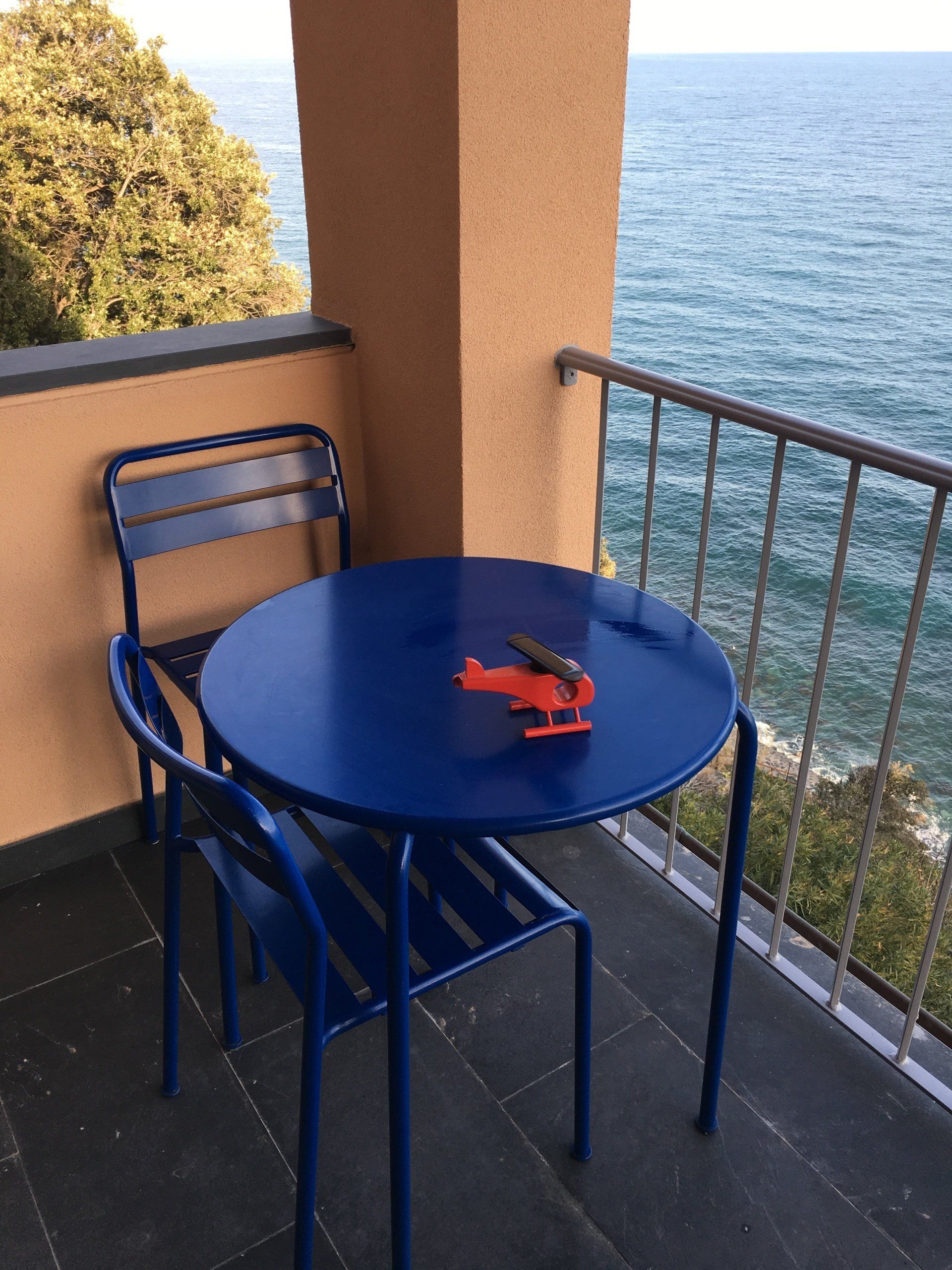 Tutto ciò a picco sul mare, con vista mozzafiato a 180°, un albero di kumquat e delle sofferenti bouganville a fare da padroni.