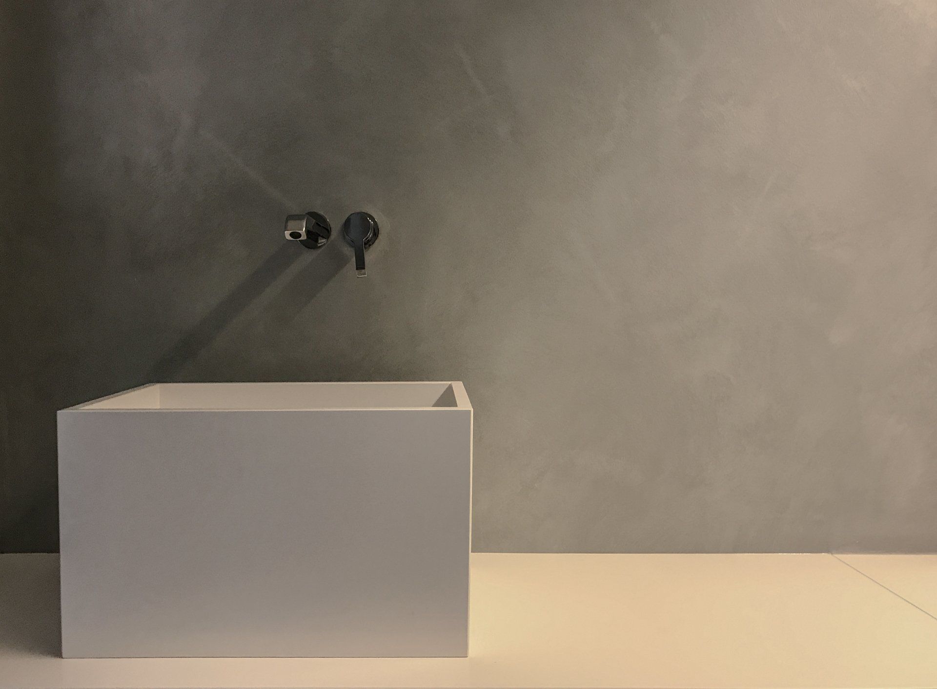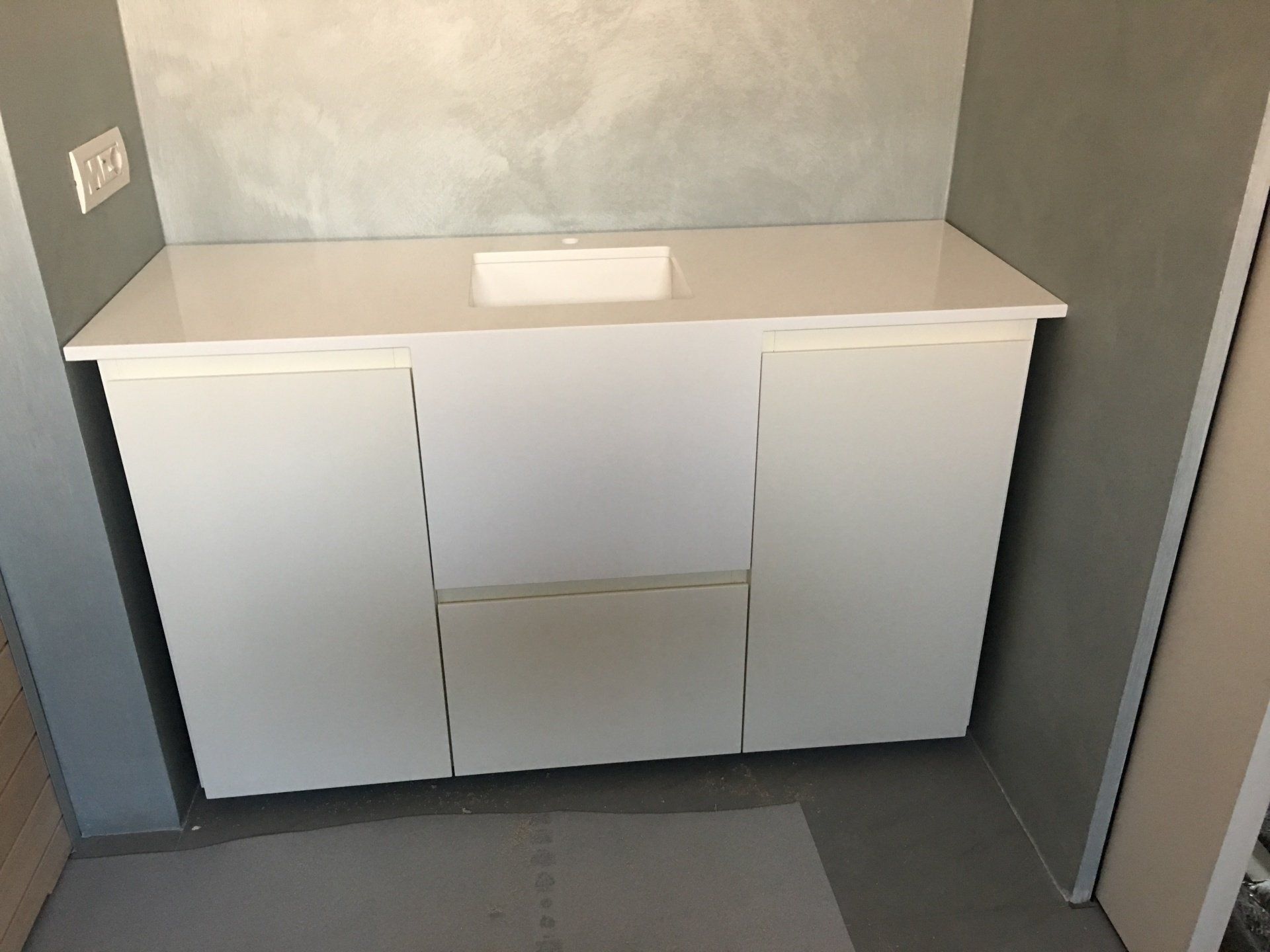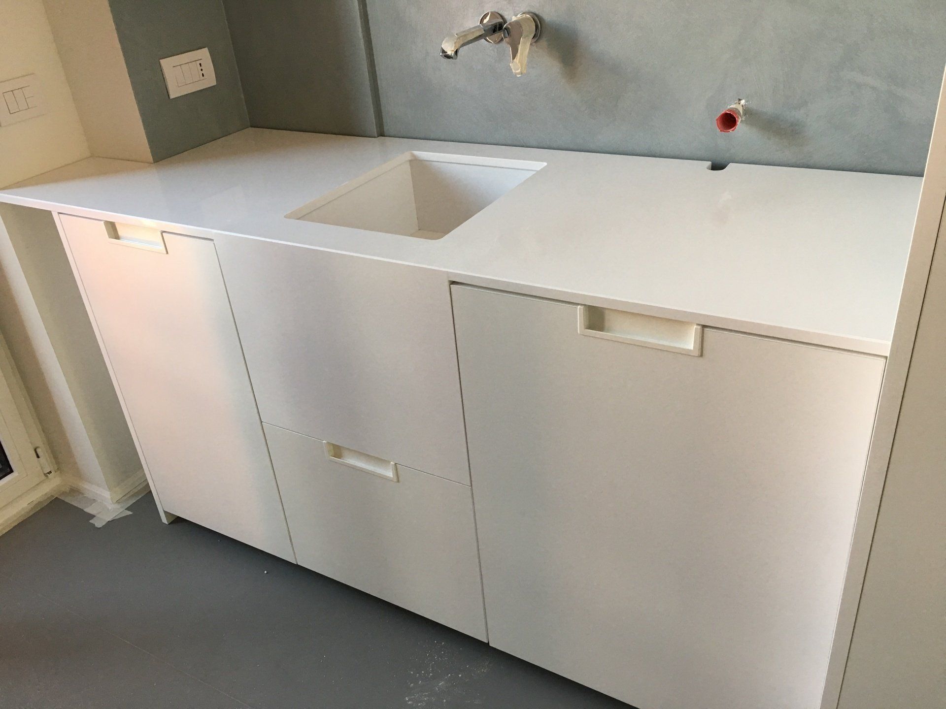 -Fornitura e posa pavimentazione e rivestimento in quarzite grey, top e lavabi in okite